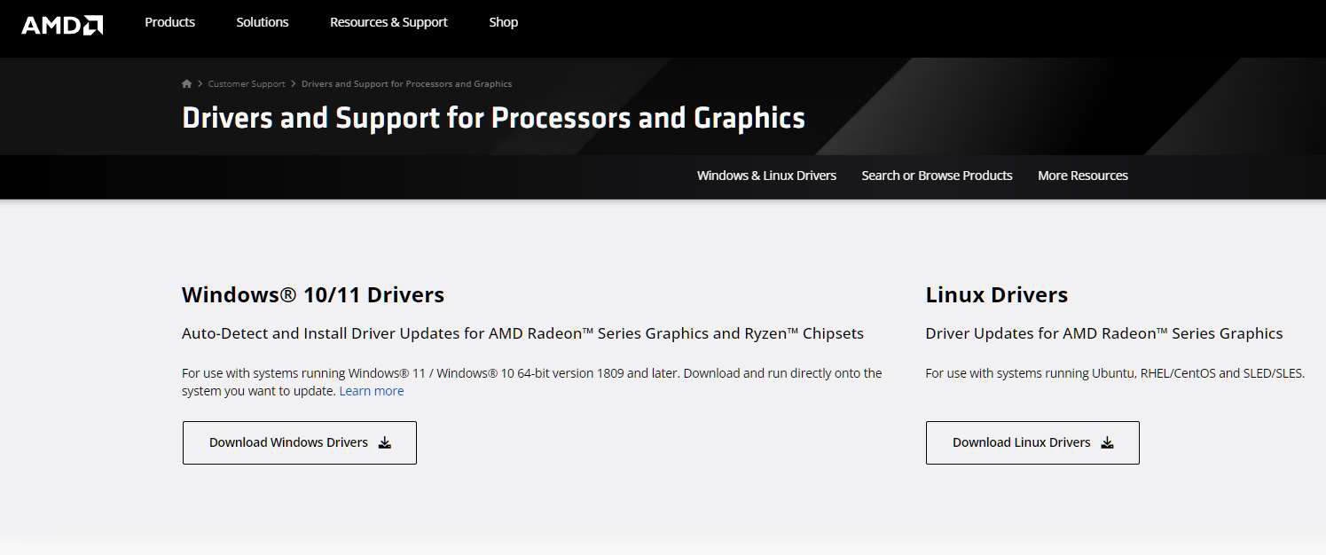 Click “Download,” under “Windows 10/11 Drivers” on the AMD webpage.